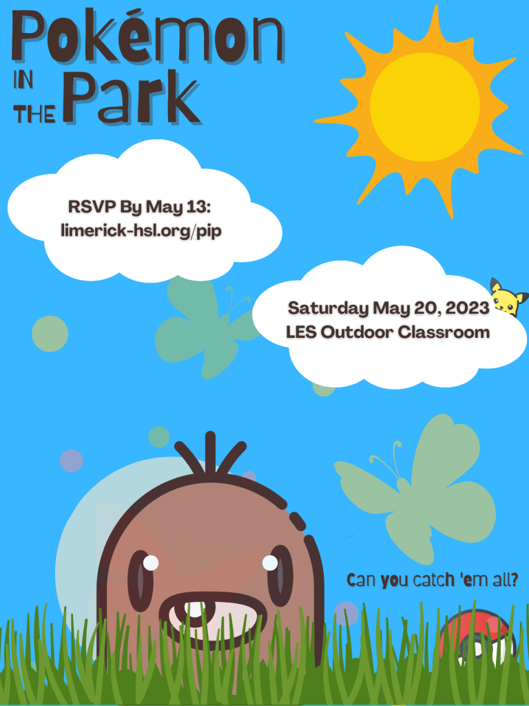But now, with a first-of-its-kind and free event, we’re bringing the family-friendly hunt to the beautiful Limerick Elementary Outdoor Classroom on May 20, 2023 from 11a – 2p (arrive at any time). And, of course, no previous Pokémon experience or knowledge is necessary.
